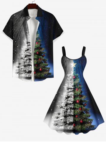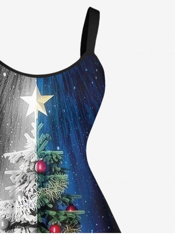 Plus Size Christmas Tree Ball Star Galaxy Contrast Color Print Tank Dress - Black - L