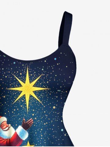 Plus Size Christmas Tree Ball Star Santa Claus Print Tank Dress - Midnight Blue - 1x