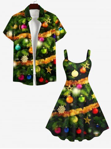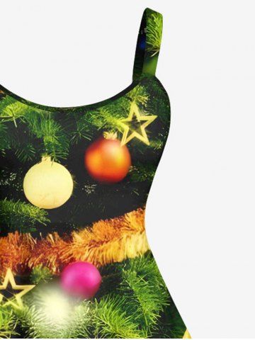Plus Size Christmas Tree Ball Star Snowflake Print Tank Dress - Green - M