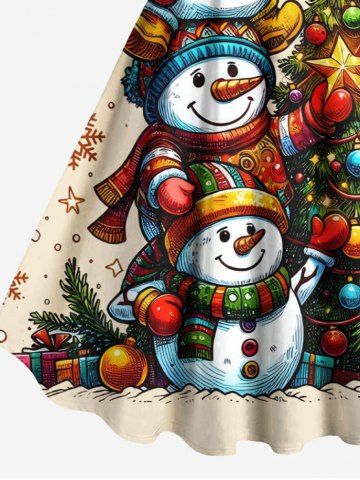Plus Size Christmas Tree Ball Star Snowflake Snowman Print Tank Dress - Apricot - L