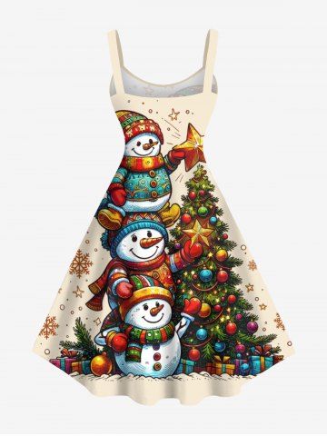 Plus Size Christmas Tree Ball Star Snowflake Snowman Print Tank Dress - Apricot - 2x