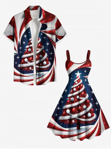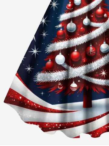 Plus Size Christmas Tree Ball Striped Candy Print A Line Dress - Red - S