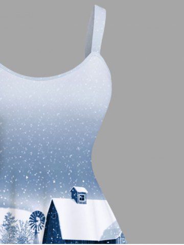 Plus Size Christmas Tree Bowknot Snowflake House Print Tank Dress - White - M