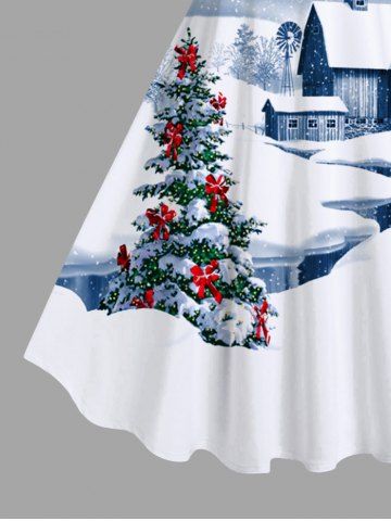 Plus Size Christmas Tree Bowknot Snowflake House Print Tank Dress - White - 4x