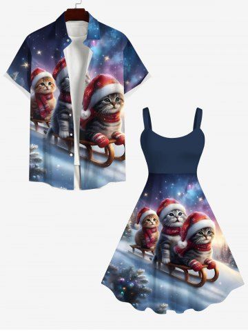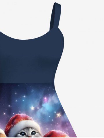Dresses > Plus Size Christmas Tree Cat Sled Galaxy Tie Dye Star Print Tank Dress