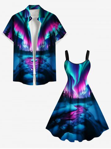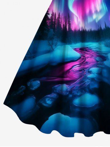 Dresses > Plus Size Christmas Tree Colorful Aurora Galaxy River Print A Line Tank Dress