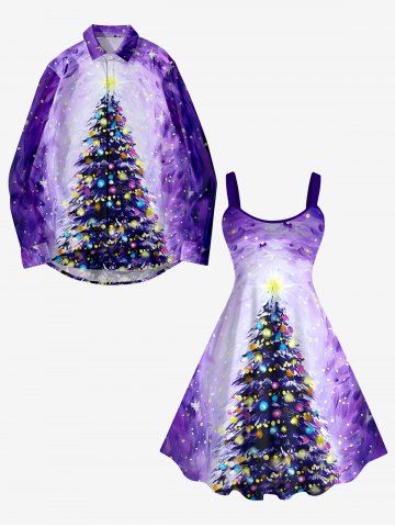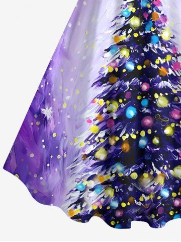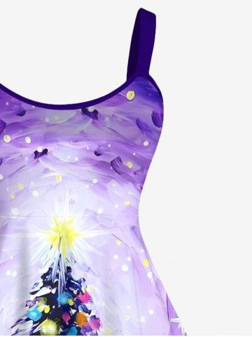 Plus Size Christmas Tree Coloured Lantern Galaxy Stars Print A Line Tank Dress - Purple - L