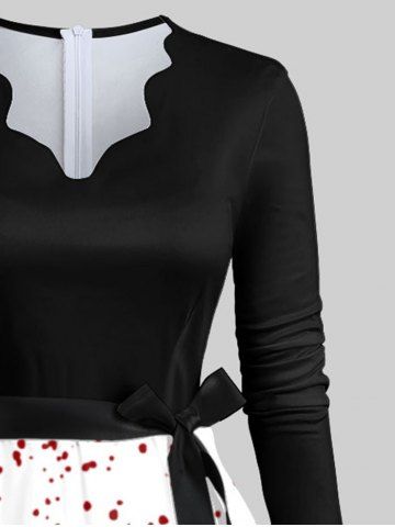 Dresses > Plus Size Christmas Tree Dots Colorblock Print Scalloped V Neck Dress With A Belt