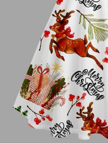 Dresses > Plus Size Christmas Tree Elk Car Letters Print Button A Line Dress with Removable Belt