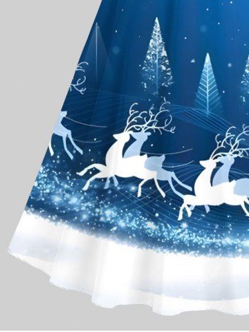 Dresses > Plus Size Christmas Tree Elk Colorblock Glitter 3D Print Scalloped V Neck Dress With A Belt
