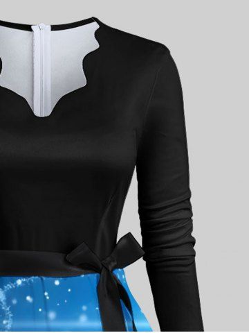 Plus Size Christmas Tree Elk Colorblock Glitter 3D Print Scalloped V Neck Dress With A Belt - Multi-a - Xl