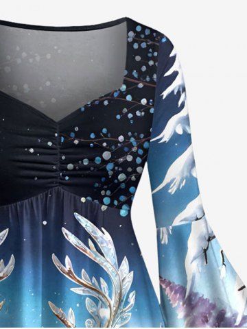 Plus Size Christmas Tree Elk Forest Print Ruched High Low Asymmetric Dress - Navy Blue - Xs