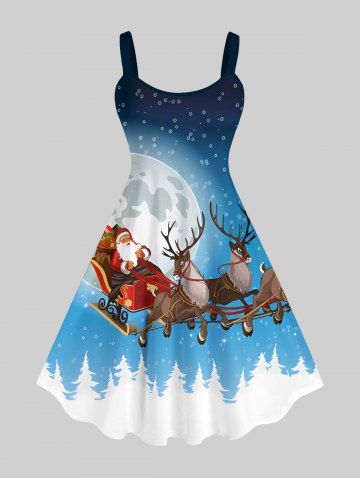 Plus Size Christmas Tree Elk Santa Claus Moon Ombre Galaxy Print A Line Tank Dress - Multi-a - M