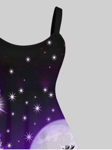 Plus Size Christmas Tree Elk Sled Santa Claus Moon Glitter 3D Print Tank Dress - Purple - 2x