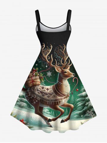 Plus Size Christmas Tree Elk Snowflake Gift Print Ombre A Line Dress - Green - S