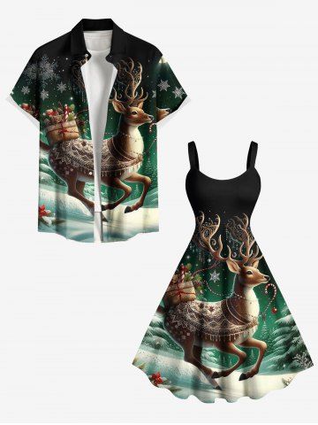 Plus Size Christmas Tree Elk Snowflake Gift Print Ombre A Line Dress - Green - M