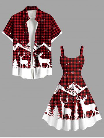Plus Size Christmas Tree Elk Snowflake Mountain Plaid Print Tank Dress - Red - Xs