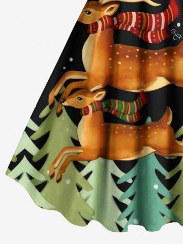 Plus Size Christmas Tree Elk Snowflake Print Tank Dress - Black - Xxs