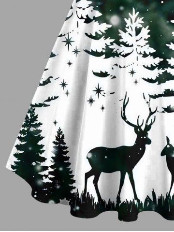 Dresses > Plus Size Christmas Tree Forest Elk Snowflake Print Ombre Button A Line Dress with Removable Belt
