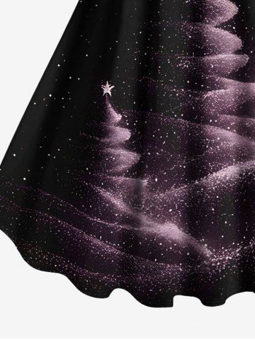 Plus Size Christmas Tree Galaxy Star Glitter 3D Print Tank Dress - Black - S