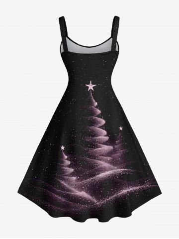 Plus Size Christmas Tree Galaxy Star Glitter 3D Print Tank Dress - Black - 1x