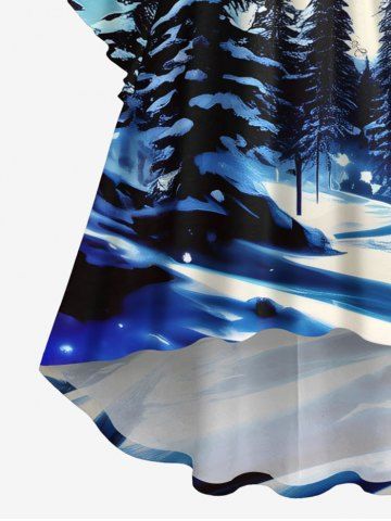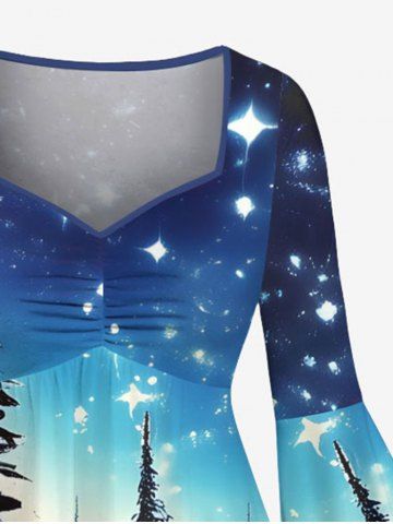 Plus Size Christmas Tree Galaxy Star Print Ruched Flare Sleeves High Low Dress - Sky Blue - 4x