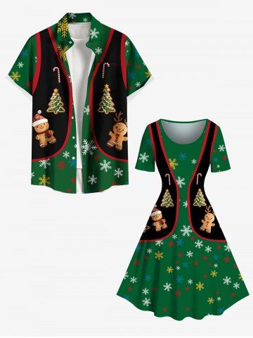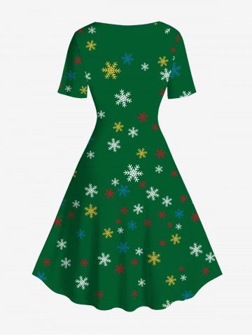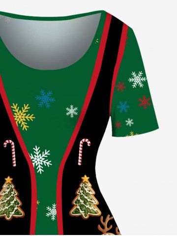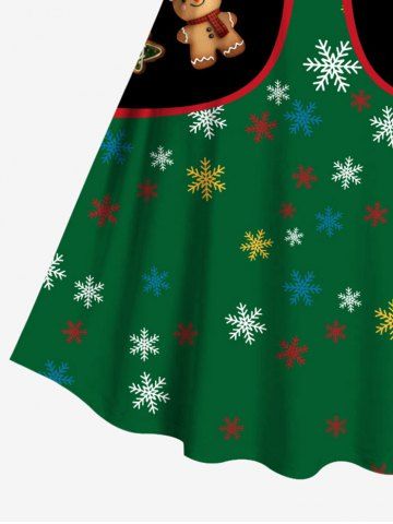 Plus Size Christmas Tree Gingerbread Snowflake Candy Vest Pattern Print A Line Dress - Green - 5x