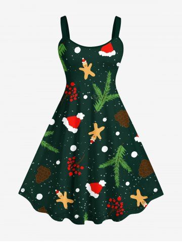 Dresses > Plus Size Christmas Tree Hat Snowflake Gingerbread Heart Galaxy Print A Line Tank Dress