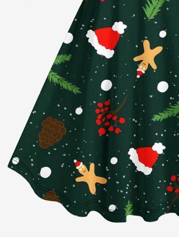 Plus Size Christmas Tree Hat Snowflake Gingerbread Heart Galaxy Print A Line Tank Dress - Black - L