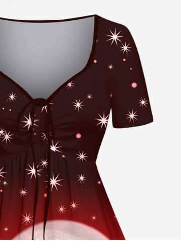 Plus Size Christmas Tree House Elk Santa Claus Sled Snowflake Moon Star Glitter 3D Print Cinched Dress - Deep Red - 6x