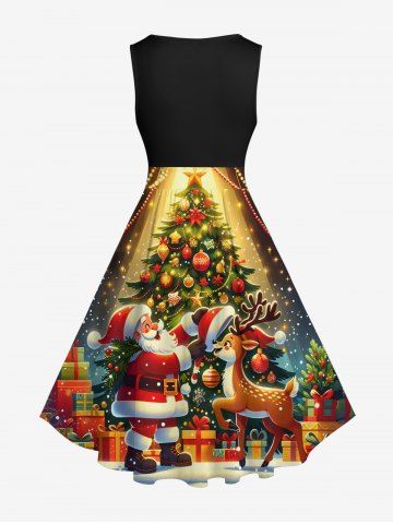 Plus Size Christmas Tree Light Ball Santa Claus Elk Print 1950s Vintage Dress - Multi-a - 1x