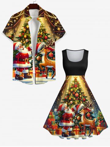 Dresses > Plus Size Christmas Tree Light Ball Santa Claus Elk Print 1950s Vintage Dress