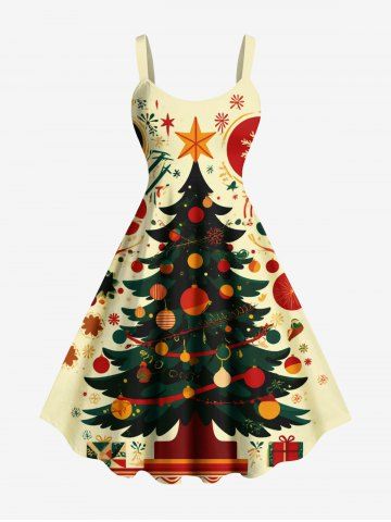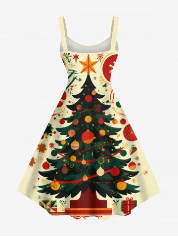 Plus Size Christmas Tree Light Ball Snowflake Flowers Print Tank Dress - Light Yellow - S