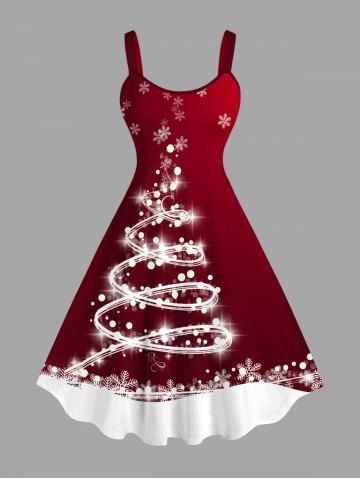 C*****a5Plus Size Christmas Tree Light Beam Snowflake Ombre Colorblock 3D Print Tank DressColor: RED Size: MSuper cute dress. Fun to wear on the holiday. I got a ton of compliments during my Christmas party. The material is super soft too. Loved wearing it!