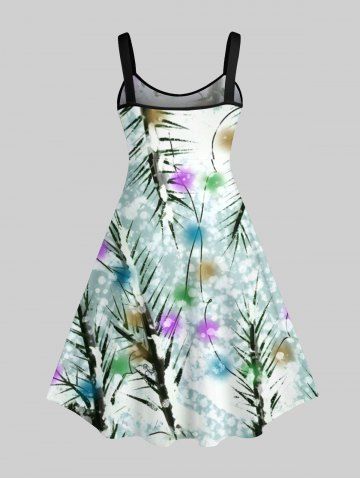 Plus Size Christmas Tree Light Snowflake Print A Line Tank Dress - Multi-a - M