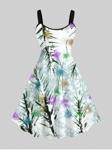 Plus Size Christmas Tree Light Snowflake Print A Line Tank Dress - Multi-a - 2x