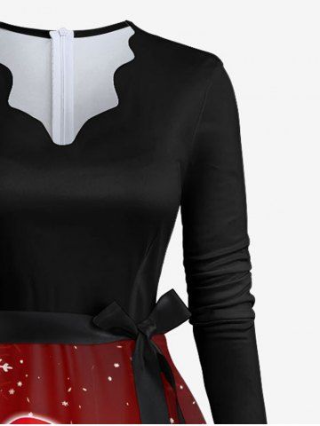 Plus Size Christmas Tree Light Snowman Snowflake Print Ombre Scalloped Neck A Line Dress with Tied Belt - Multi-a - L