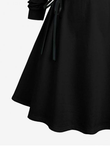 Plus Size Christmas Tree Plaid Print Lace Up Drawstring Hoodie Dress - Black - 1x