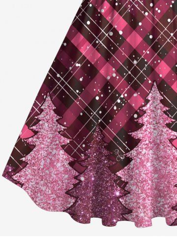 Plus Size Christmas Tree Plaid Sparkling Sequin Glitter 3D Print 1950s Vintage Dress - Deep Red - 6x