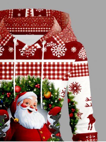 Plus Size Christmas Tree Santa Claus Bowknot Snowflake Elk Print Lace Up Drawstring Hoodie Dress - Red - Xs