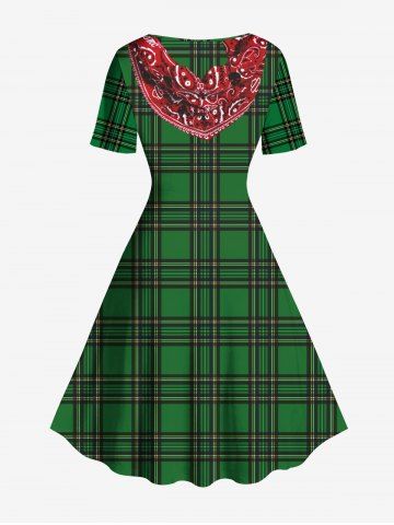 Plus Size Christmas Tree Santa Claus Elk Plaid Print Vintage Dress - Deep Green - 3x