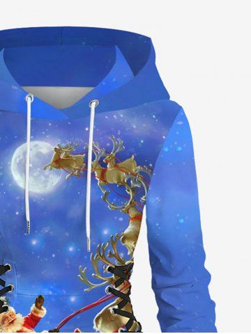 Plus Size Christmas Tree Santa Claus Elk Sled Galaxy Print Lace Up Drawstring Hoodie Dress - Sky Blue - 2x