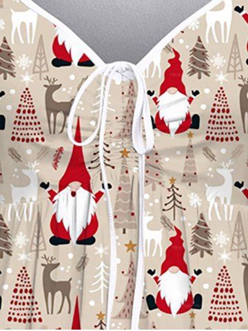 Plus Size Christmas Tree Santa Claus Elk Snowflake Stars Print Cinched A Line Dress - Light Coffee - 2x