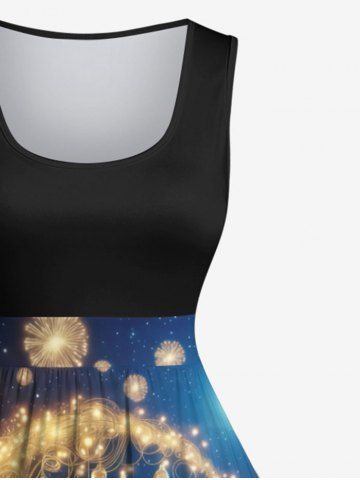 Plus Size Christmas Tree Santa Claus Fireworks Snowflake Moon Gift Box Glitter 3D Print 1950s Vintage Dress - Black - Xs