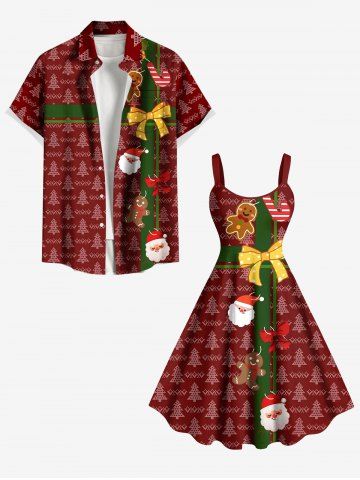 Plus Size Christmas Tree Santa Claus Gingerbread Bowknot Print Tank Dress - Red - S