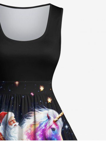 Plus Size Christmas Tree Santa Claus Unicorn Glitter Star Galaxy Print Vintage Swing A Line Dress - Black - 2x
