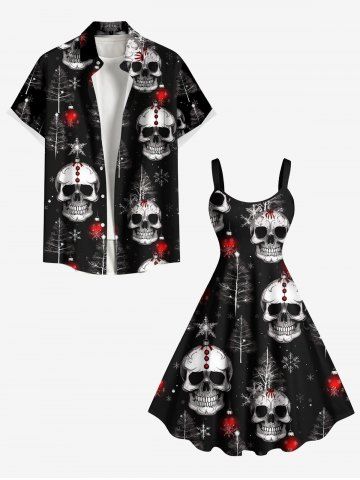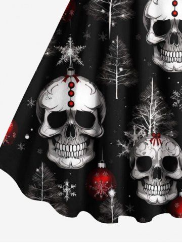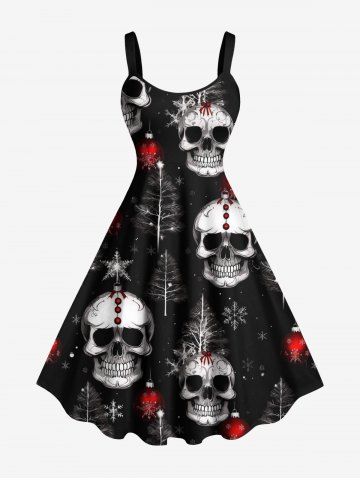 Plus Size Christmas Tree Skull Snowflake Print A Line Dress - Black - S