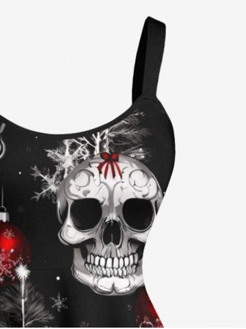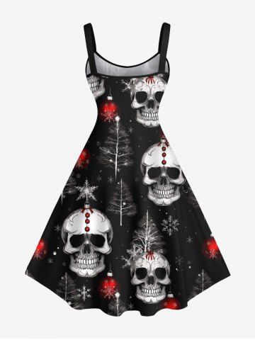 Plus Size Christmas Tree Skull Snowflake Print A Line Dress - Black - 5x