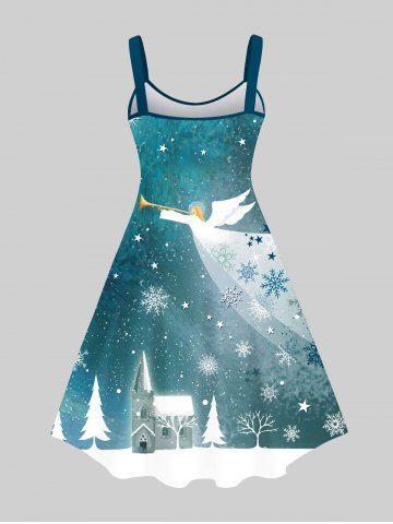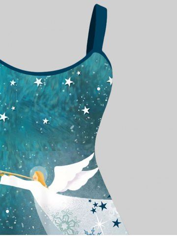 Renaissance Plus Size Christmas Tree Snowflake Castle Angel Stars Galaxy Print Ombre A Line Tank Dress - Deep Green - M