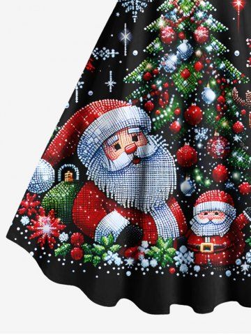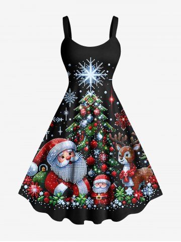 Plus Size Christmas Tree Snowflake Elk Santa Claus Print A Line Tank Dress - Black - S
